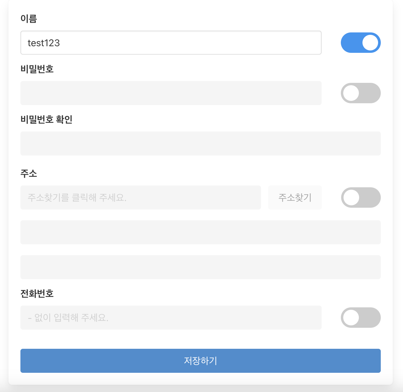 주소와 전화번호는 적지 않아서 뜨지 않는 상태이다.