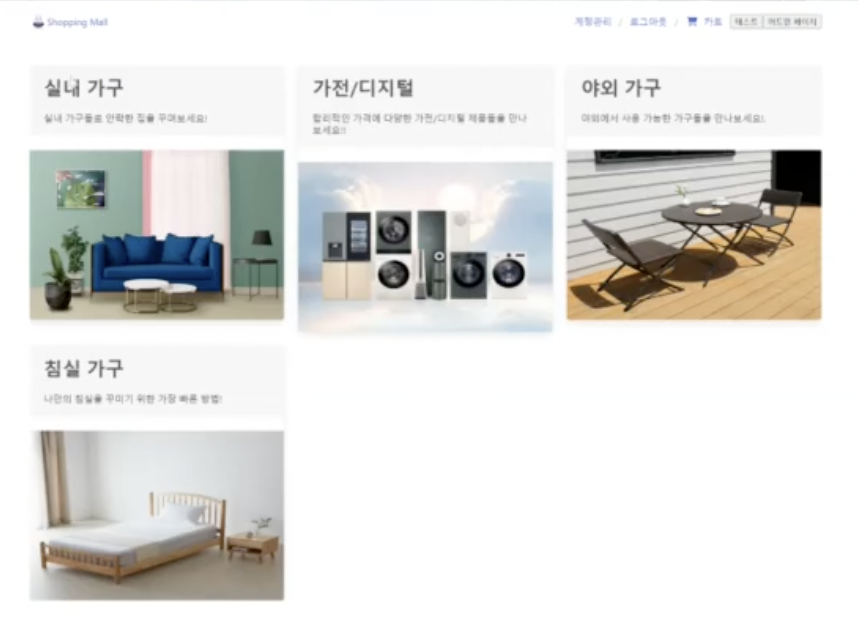 2차 프로젝트는 쇼핑몰을 개발하는 팀 프로젝트를 했는데 우리 팀은 오늘의 집과 비슷한 가구를 판매할 수 있는 사이트를 만들었다. 그리고 제대로 된 팀 프로젝트를 두 번째 프로젝트를 통해 Git으로 협업하는 능력을 키우기 좋았다.