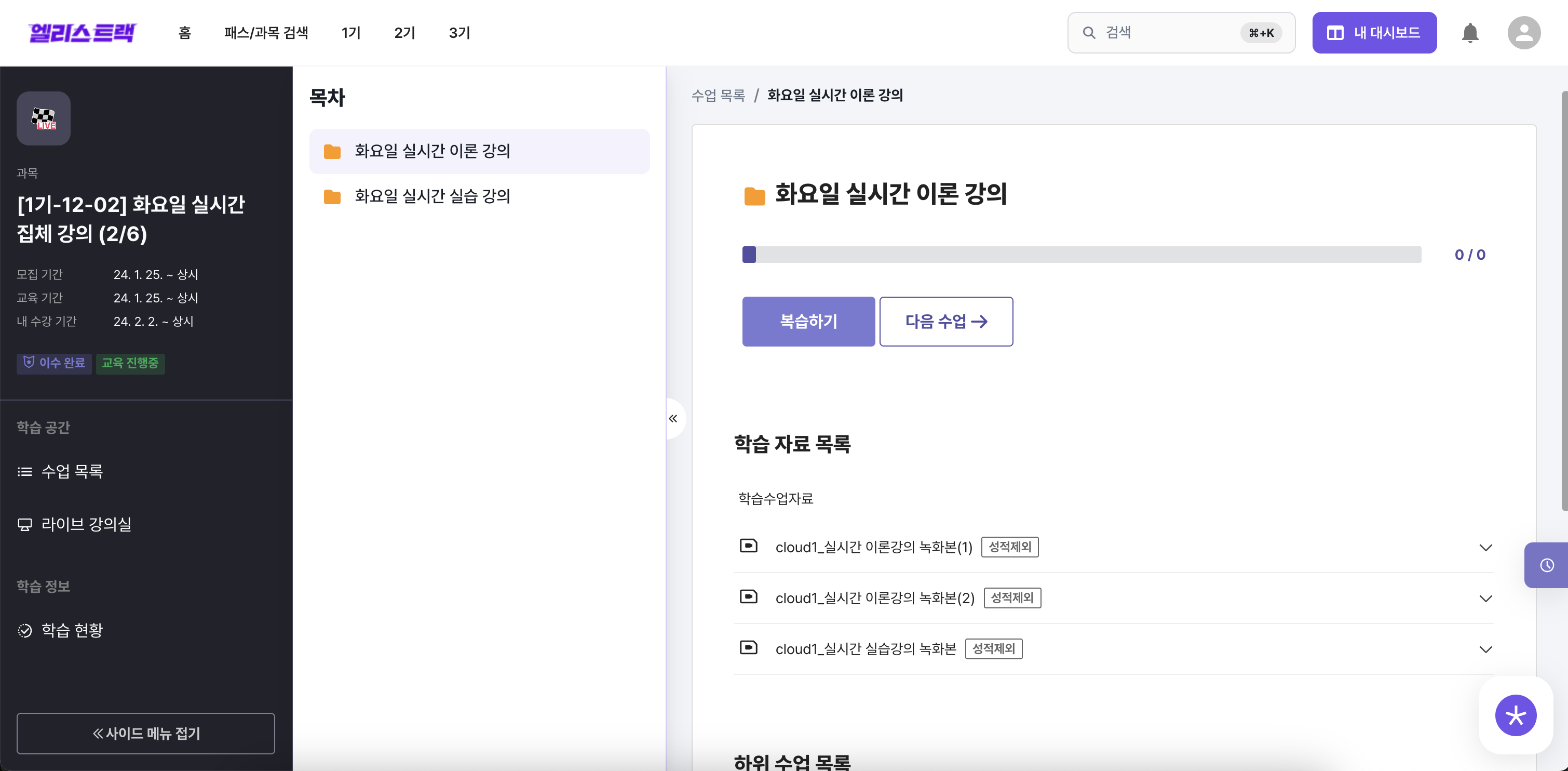 강의는 월, 수, 금은 녹화 강의를 통해 강의를 듣고 화, 목은 코치님과 실시간으로 수업을 해 바로바로 질문도 할 수 있다.