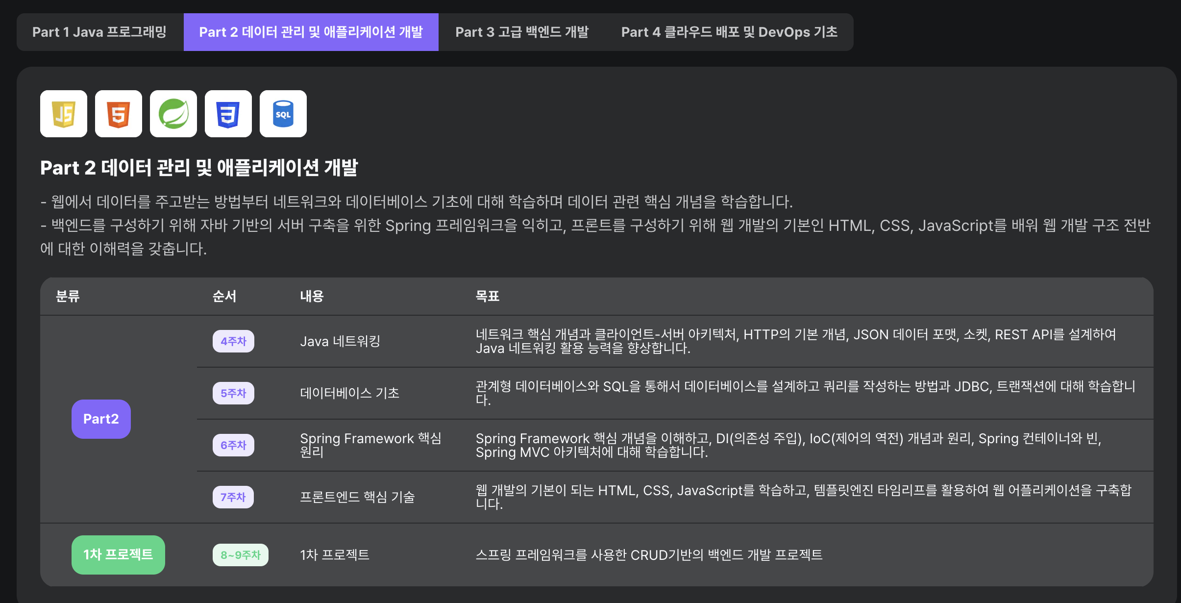 저는 전공자지만 스프링은 하나도 모르는 상태였고 그냥 학교에서 배우는 이것저것 경험이랑 잠깐 인턴을 하며 Django를 써본 게 다인 상태였는데 수료를 한 지금 상태는 백엔드 개발자가 될 수 있을 것 같다는 생각이 들었다.
